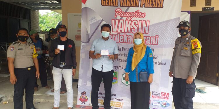 Bekasi – Suarainvestigasi.com – Polsek Tambelang, Polres Metro Bekasi gelar Operasi Kemanusiaan Dalam Rangka Bhakti Kesehatan Bhayangkara Untuk Negeri berupa Kegiatan Vaksinasi tahap dua bagi warga di Puskesmas Pembantu desa Sukamekar, Kecamatan Sukawangi, Kabupaten Bekasi, Selasa (31/08/2021).