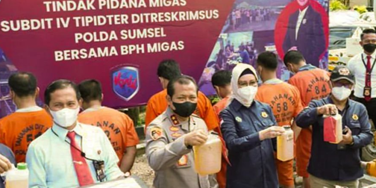 Palembang – Suarainvestigasi.com – Kepolisian Daerah Sumatera Selatan dan Badan Pengatur Hilir Migas (BPH Migas) melakukan penggrebekan pabrik pengoplosan BBM Illegal dengan temuan barang bukti BBM illegal oplosan sebesar 108 ton (11/3).