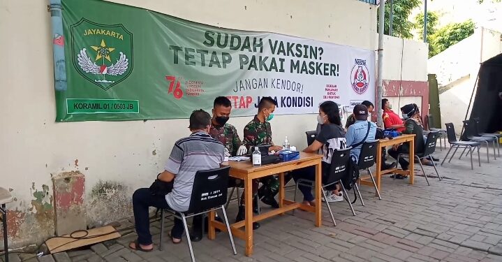 Jakarta Barat – Suarainvestigasi.com – Serbuan Vaksinasi TNI yang dilakasanakan Koramil 01/Tamansari, Kodim 0503/Jakarta Barat di Gerai vaksinasi Halaman Stadian Sepak Bola Tamansari dengan Target 200 orang serta menerapkan protokol kesehatan (Prokes).