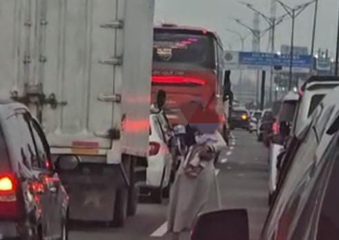 Pengemis tersebutpun sempat terekam oleh salah satu pengemudi. Padahal keberadaan pengemis di jalan tol sangatlah berbahaya dan melanggar hukum, baik bagi keselamatan individu tersebut maupun para pengemudi lainnya.