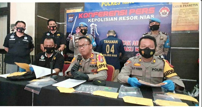 Kapolres Nias AKBP. Wawan Iriawan.,S.IK, menjelaskan didampingi Kabag OPS, AKP. J. Sidabutar.,SH kepada Awak Media di Polres Nias, kamis 25 Februari 2021. Tim satres Narkoba Polres Nias berhasil menangkap seorang tersangka pengedar dan sekalian pemakai Narkoba jenis Sabu-sabu, di Wilayah Kec. Lotu Kab. Nias Utara plaza hari sabtu, 20 Februari 2021.Tersangka AZ alias Ama Kirana Warga Desa Hilisalo’ Kec. Sitölu Öri Kab. Nias Urat.