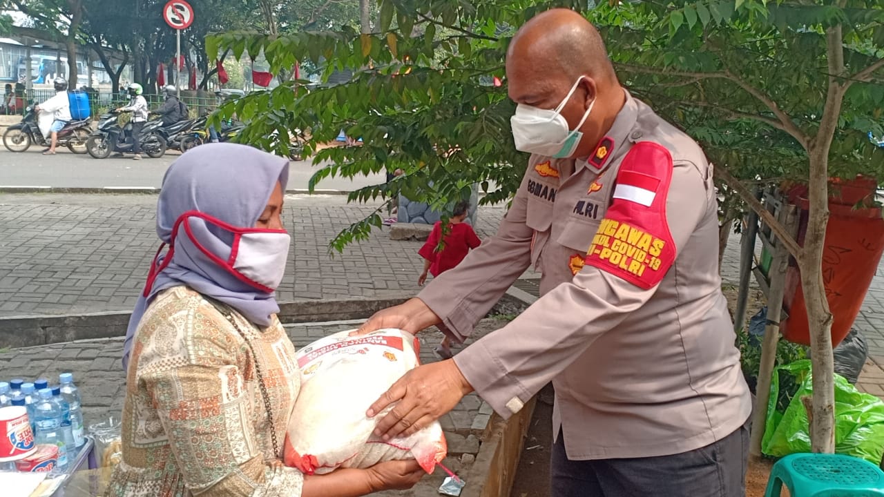 Jakarta- Suarainvestigasi.com – Kapolsek Cengkareng Kompol Egman SH didampingi Wakapolsek Akp Eko Amperiyanto, memberikan bantuan kepada para pedagang Keliling, Tukang Ojek/Ojek Pangkalan (Opang) dan warga yang kurang mampu yang terdampak Pandemi Covid 19,